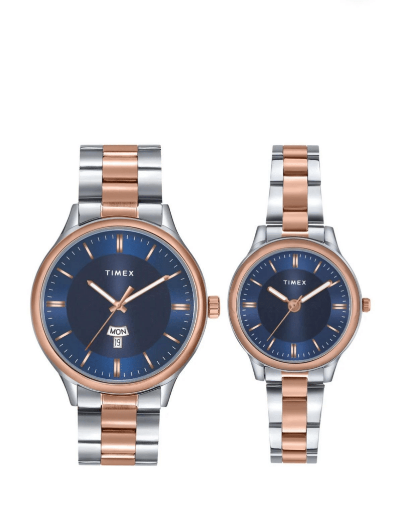 Timex analog pair watches offer timeless elegance and reliable functionality. These watches of classic design with modern accents, perfect for any occasion. Featuring durable materials and precise quartz movements, they ensure accurate timekeeping. With versatile styles ranging from minimalist to bold, these watches cater to diverse tastes. Whether for everyday wear or special events, these watches exude sophistication and lasting quality.