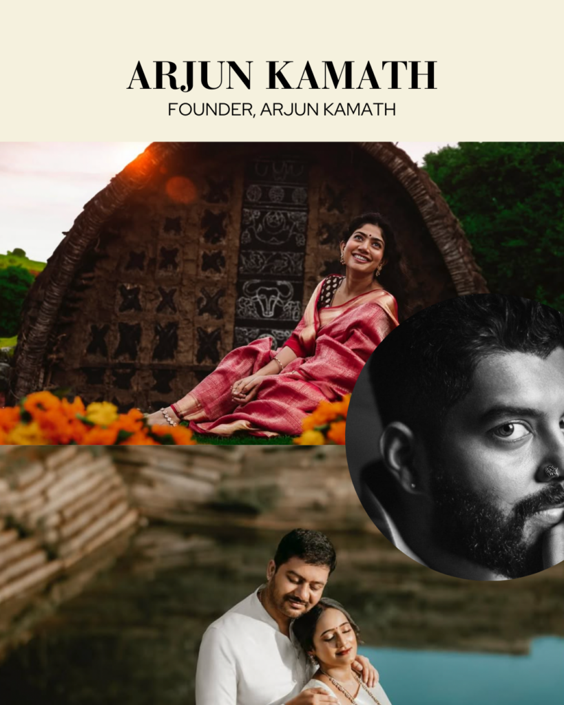 Arjun Kamath’s storytelling is bold and imaginative. With a background in fine arts and film, his wedding photography often feels cinematic, blending creativity with the couple’s personalities.