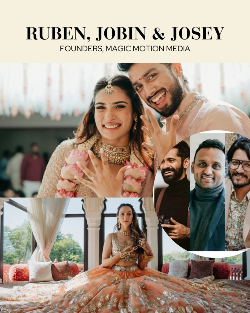 This Chennai-based team is a powerhouse of cinematic storytelling. Magic Motion Media specializes in capturing weddings with a balance of grandeur and intimacy, making them a preferred choice for destination and traditional weddings alike.