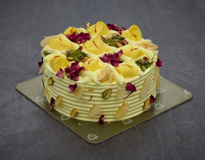 This exquisite treat features layers of delicately flavored sponge cake soaked in aromatic saffron-infused milk. Topped with crunchy pistachios and almonds, it beautifully embodies the essence of traditional rasmalai. Every bite offers a comforting embrace of nostalgia and warmth, making it a heartfelt gift for those who cherish the blend of tradition and taste.