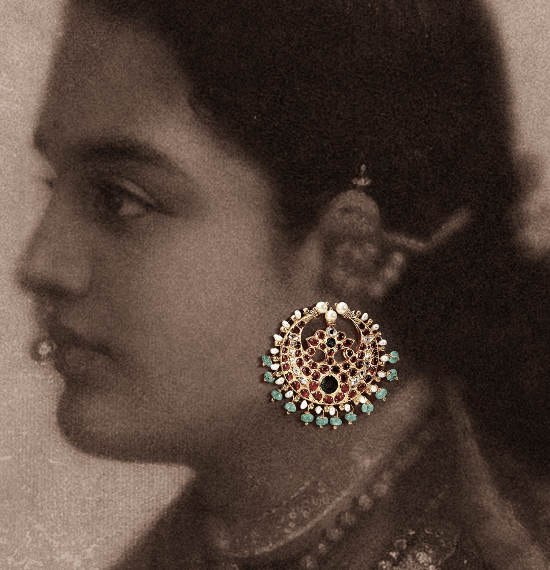 - Earrings that move—oversized chandbalis, jhumkas with pearl drops, chandeliers that sway with dance.