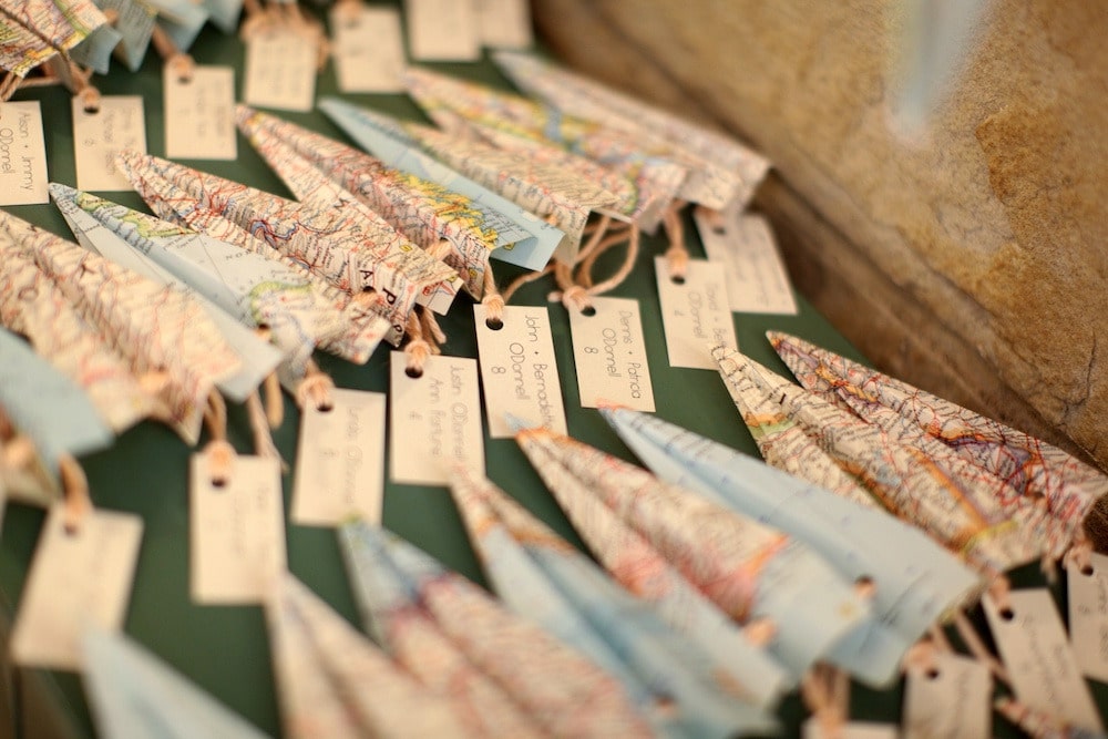 2. Travel Memorabilia: Couples often display their travel memorabilia as part of their wedding decor. From vintage suitcases and globes to postcards and maps, these items add a personal touch and tell the story of their adventures together