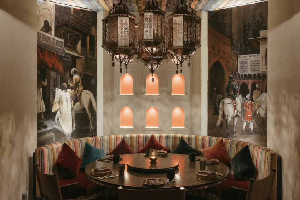At Loya, dining is not just dining, it’s unwrapping poetry. The Taj’s monumental heritage is the setting, yes, but Loya breathes stories from a bygone era straight into your senses. A cocktail of aromas, frankincense mingling with turmeric’s earthiness, brushes against you, teasing curiosity. It’s as if the air itself whispers secrets from spice-trodden caravan trails.