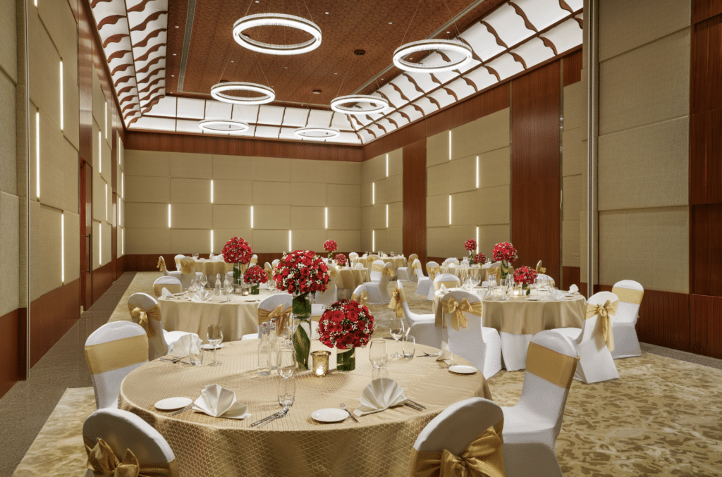 For couples envisioning a multi event celebration, the property’s event spaces are thoughtfully versatile. A dramatic amphitheatre creates a natural stage for pheras or sangeet nights, while the 2500 square foot indoor banquet hall sits conveniently beside a manicured lawn, allowing planners to design experiences that move effortlessly between open air romance and indoor refinement.